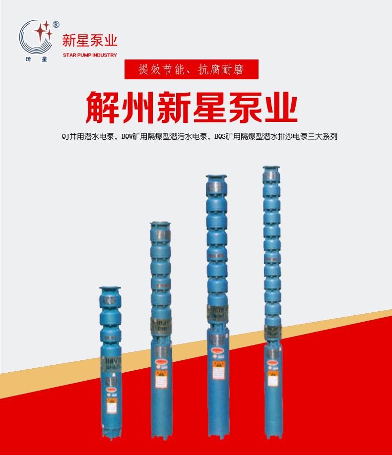 運城市解州新星泵業有限公司(原名:運城市解州新星潛水電泵廠)始創于1982年(已于2009年11月17日變更為運城市解州新星泵業有限公司),是經國家質量監督檢驗檢疫局頒發生產許可證的定點現代農機具加工制造企業,是融科研、開發、設計、制造于一體的潛水電泵生產基地成員之一。 本公司位于三晉之名鎮----解州鎮,地理位置優越,依山傍水,風景如詩如畫,是古今兵家必爭的咽喉要道,是晉、秦、豫三省交界的交通樞紐,人杰地靈,文化底蘊深厚,系古三國名圣關羽/公出生地。歷代名人柳宗元、現代畫家丁紹光均生長在這里。